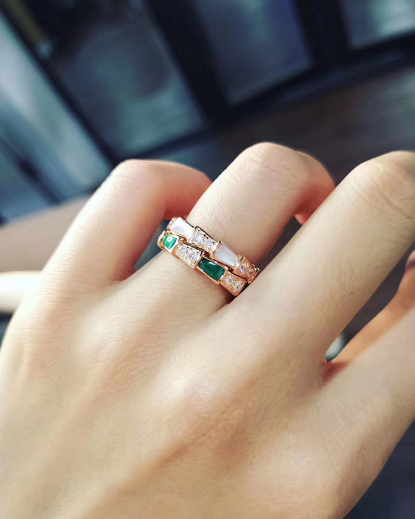 Bulgari snake bone diamond ring mother-of-pearl ring-3676