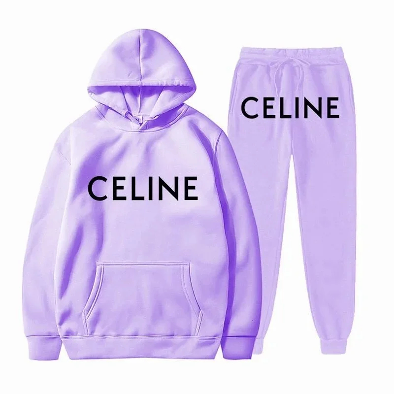 Celine New Print Letter Loose-fitting Hooded Sweatshirt Set-5516
