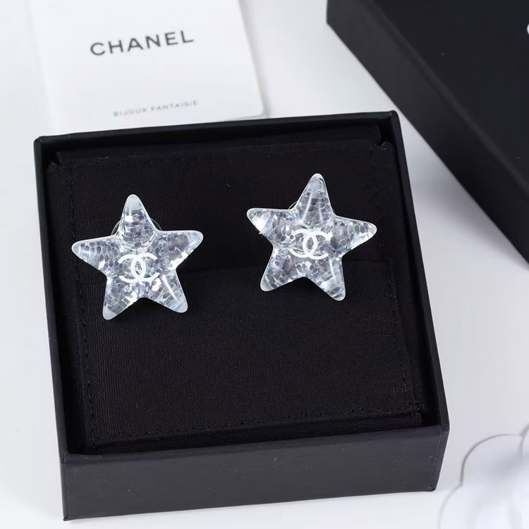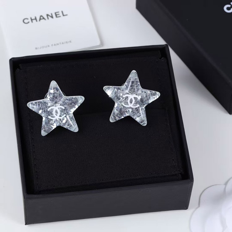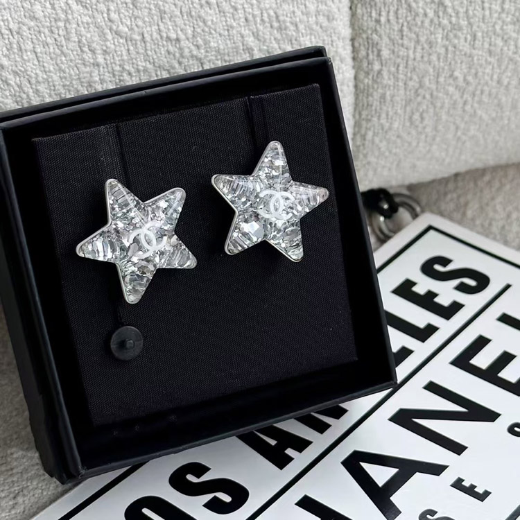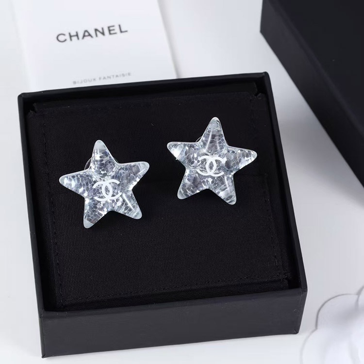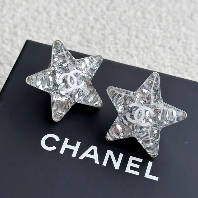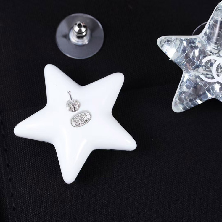 Home > Chanel earrings white double c silver sequins acrylic star earrings-3744
