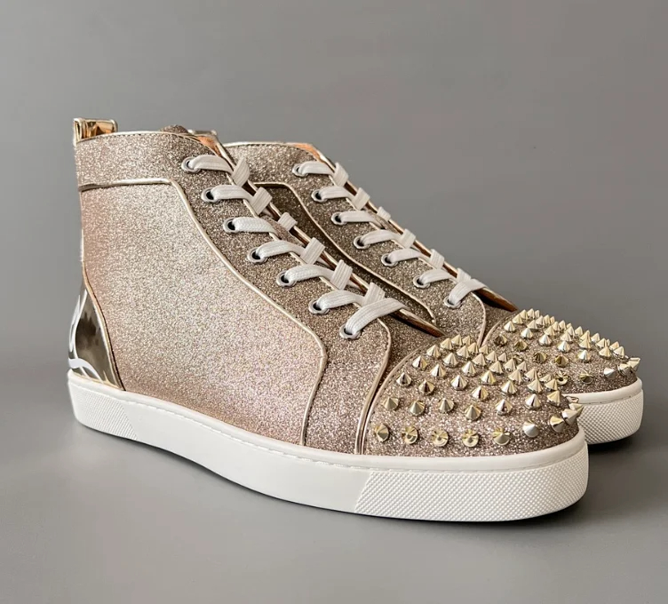 Home > Christian Louboutin CL calfskin round toe lace-up high-top sneakers-2963