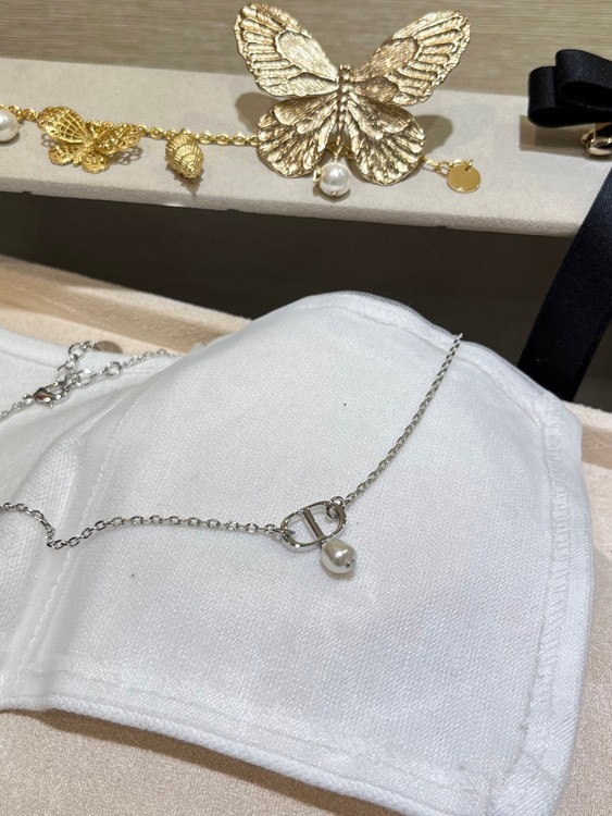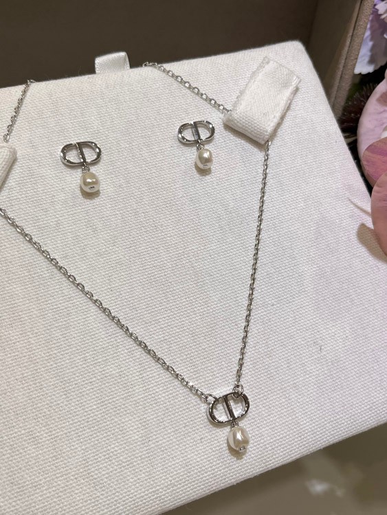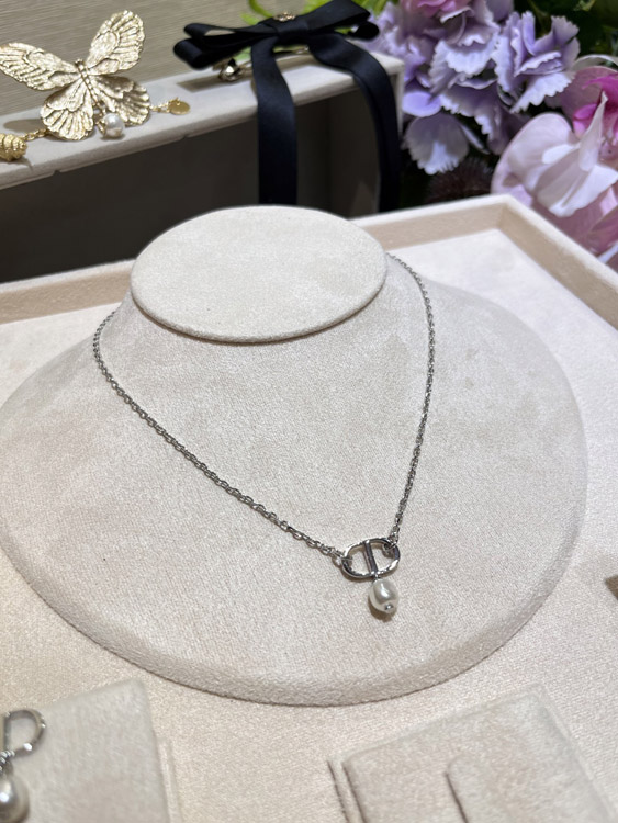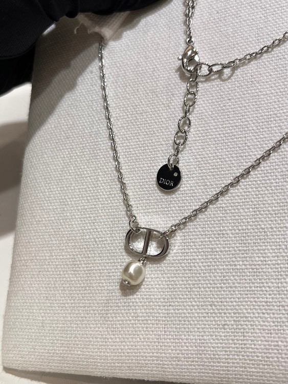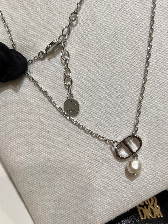 Dior Silver CD Small Pearl Pendant Necklace-3960