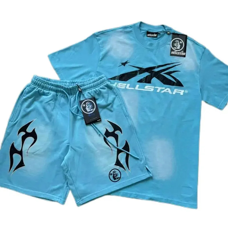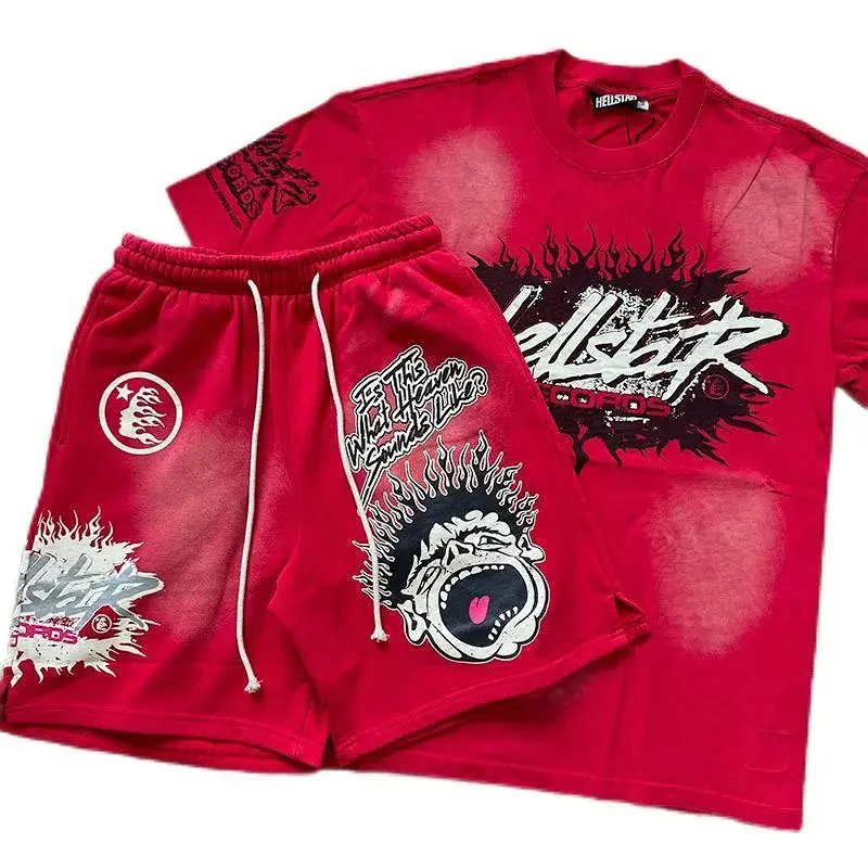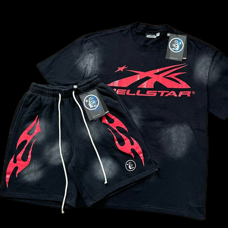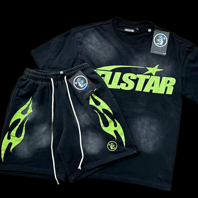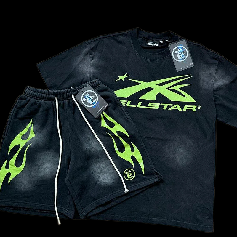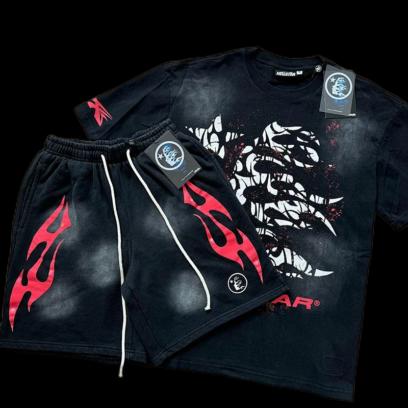 Hellstar printed loose short-sleeved shirt and shorts set-5185