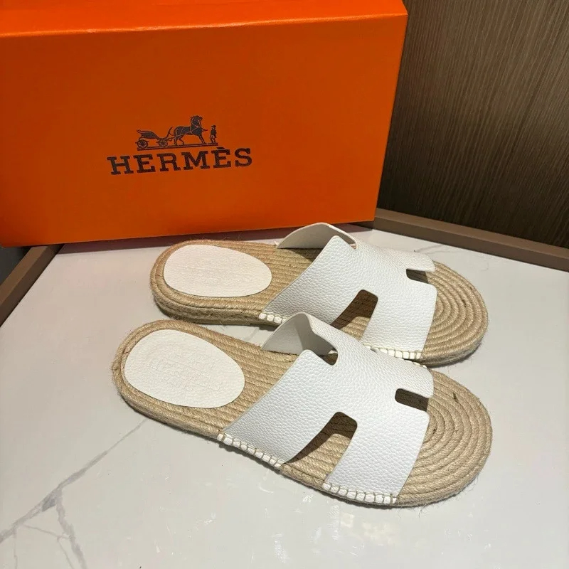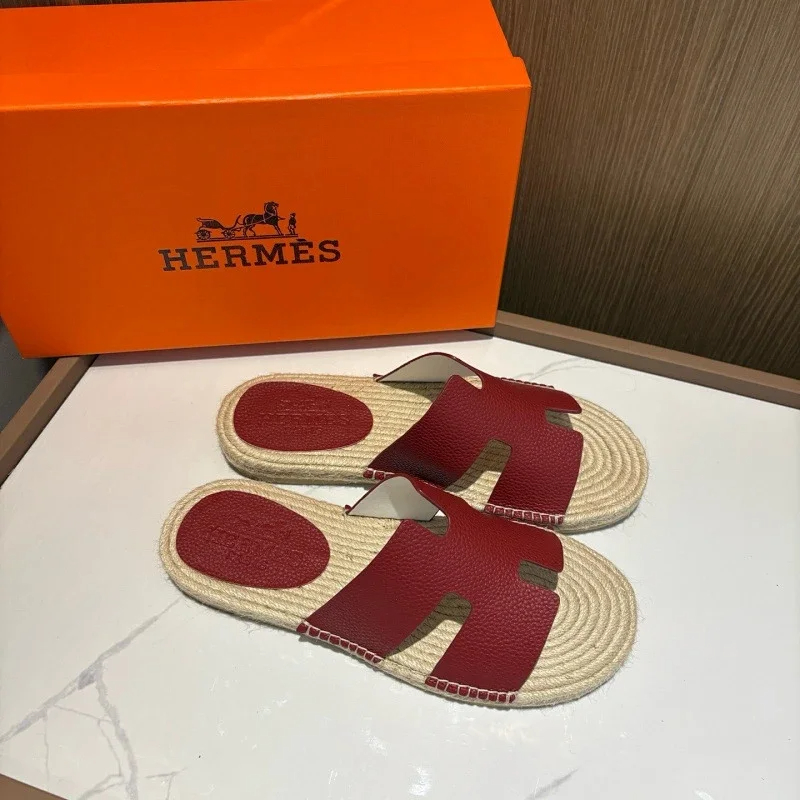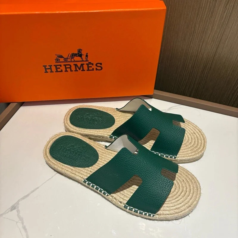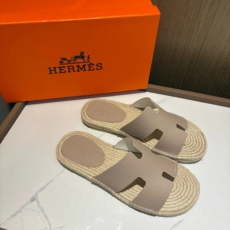 HERMES Antigua Suede Round-Toe Slip-On Sandals-5137