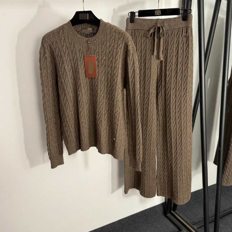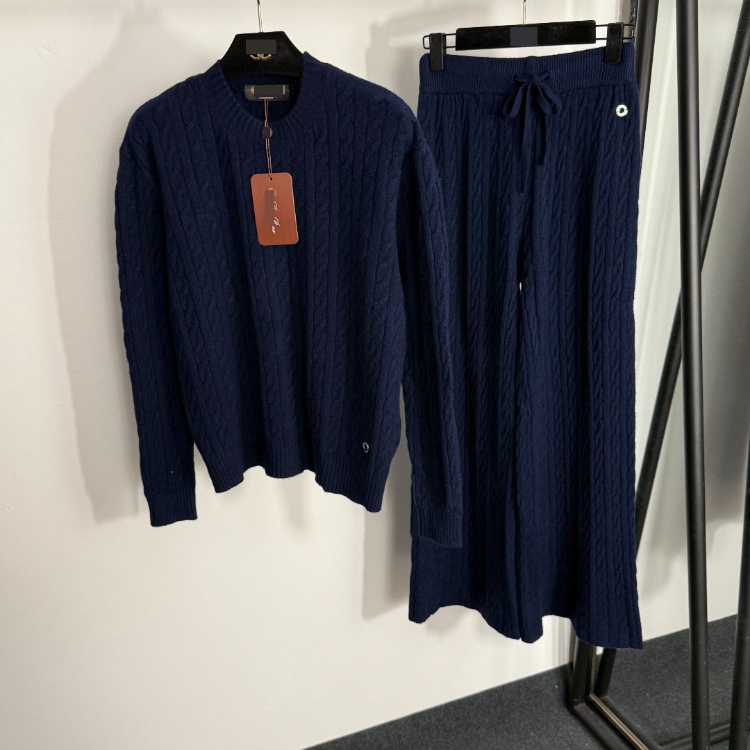 Loro Piana high-end knitted cable-knit striped sweater and wide-leg trousers-5401