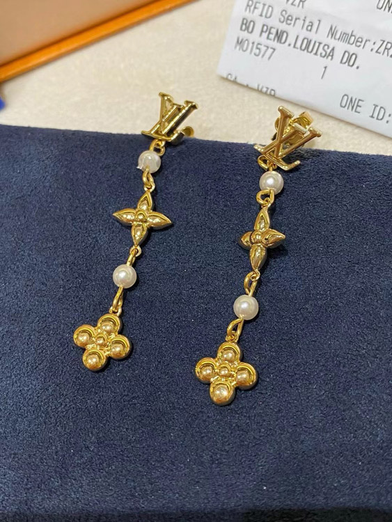 Louis Vuitton LV letter pearl four-leaf clover long earrings-3832