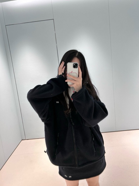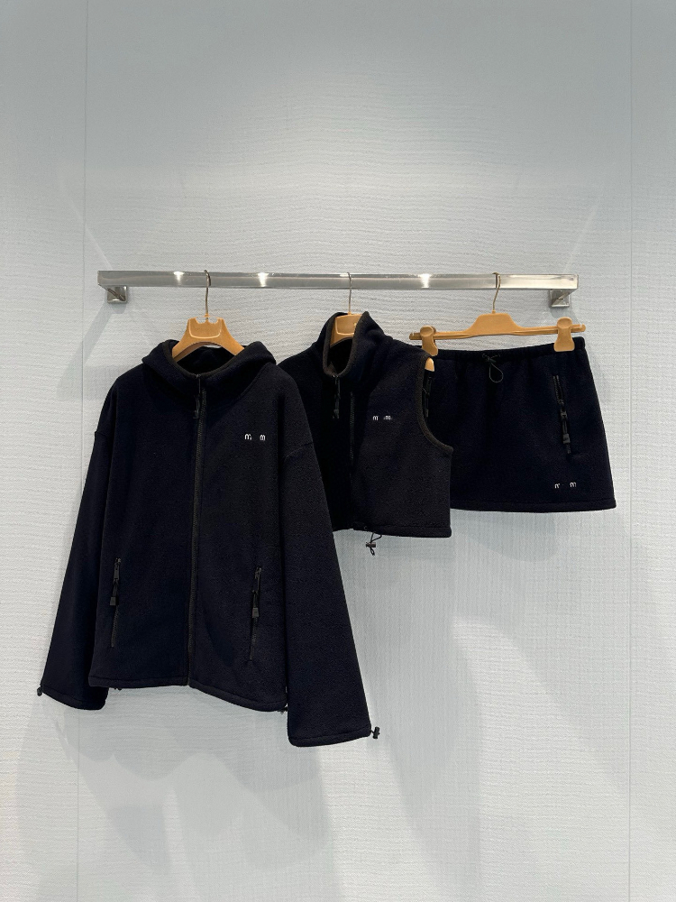 Miu Miu new collection set Embroidered logo fleece hooded zip-up jacket-5363