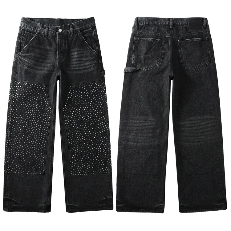 Purple Brand new diamond-studded slim-fit skinny jeans with wide legs-4247