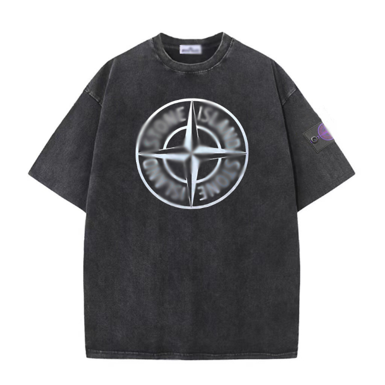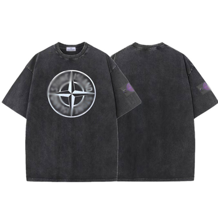 Stone Island washed and distressed short-sleeved loose-fitting vintage casual T-shirt-5270