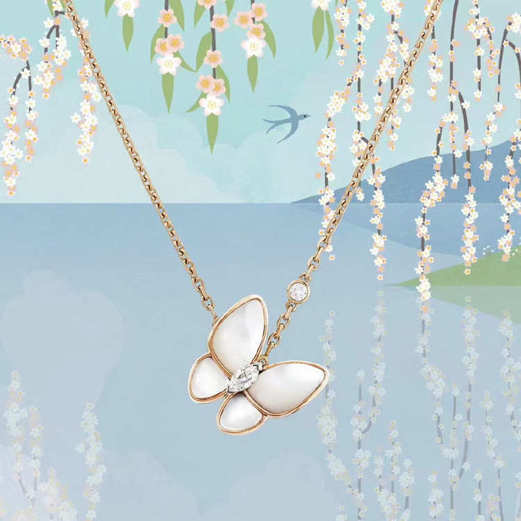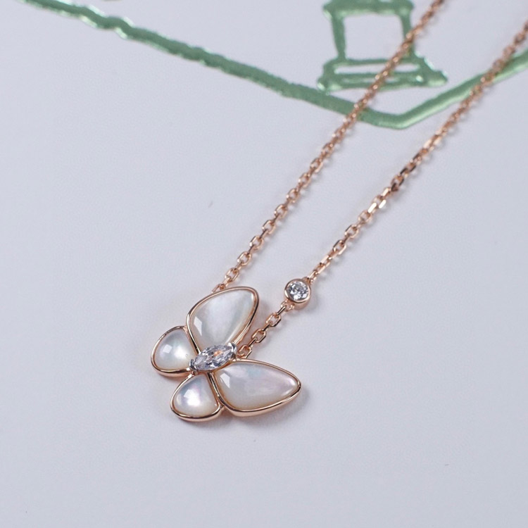 Home > Van Cleef & Arpels Gold and White Mother-of-Pearl Butterfly Necklace-3694