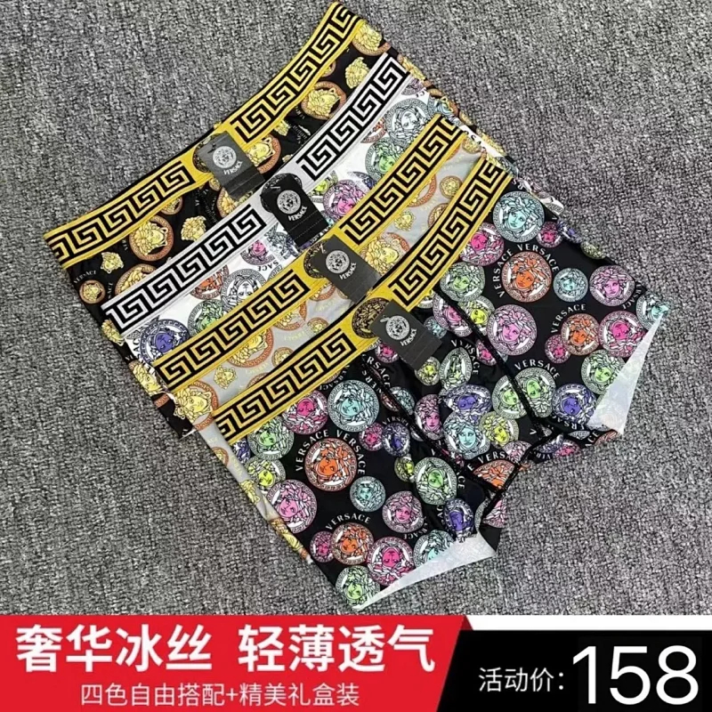 VERSACE Men's stylish breathable underwear with colorful logo pattern Briefs Boxer Briefs 4pcs-2409