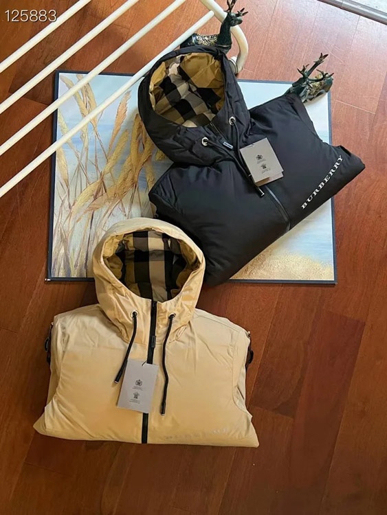 Burberry plaid hooded down jacket-4259