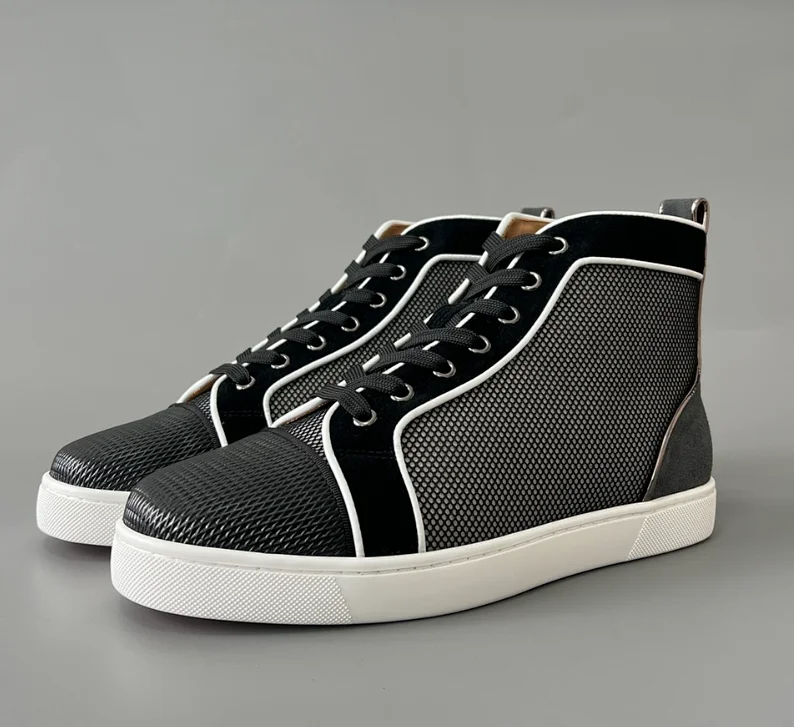 Christian Louboutin CL calfskin round toe lace-up high-top sneakers-2963