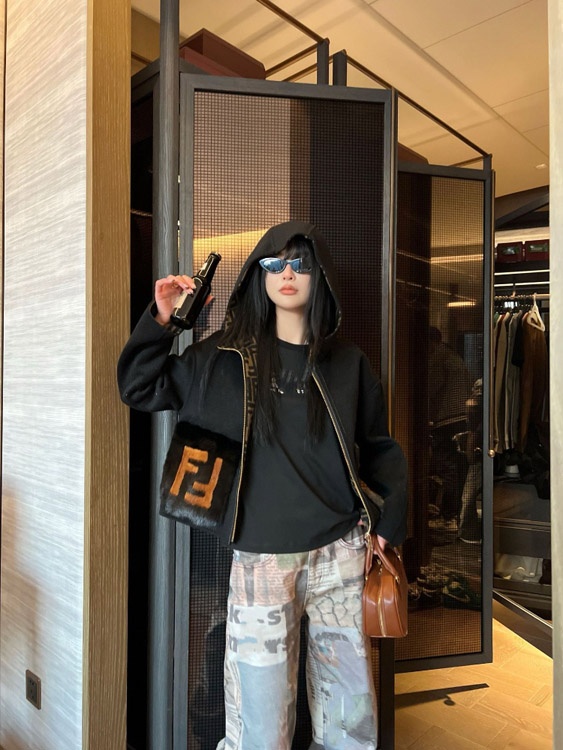 Fendi new wool blend zip-up hooded short jacket-5378