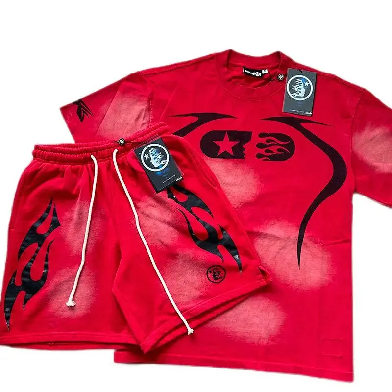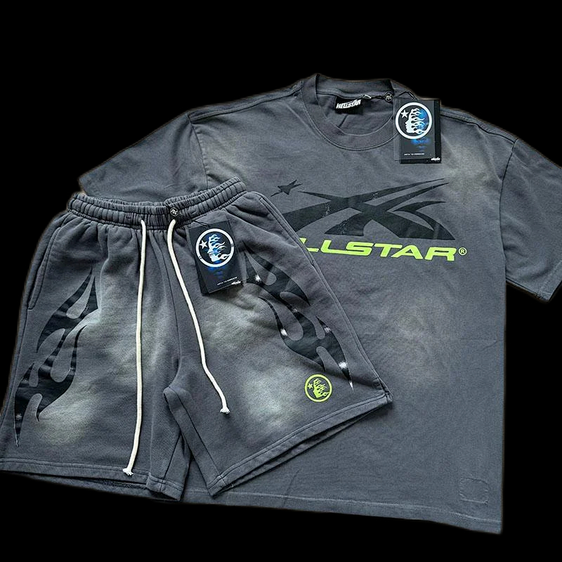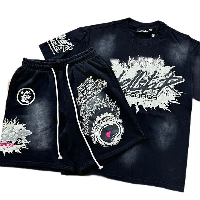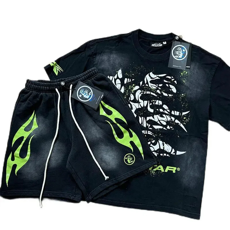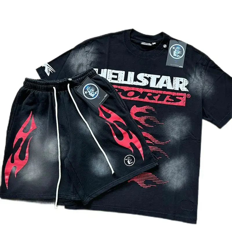 Hellstar printed loose short-sleeved shirt and shorts set-5185