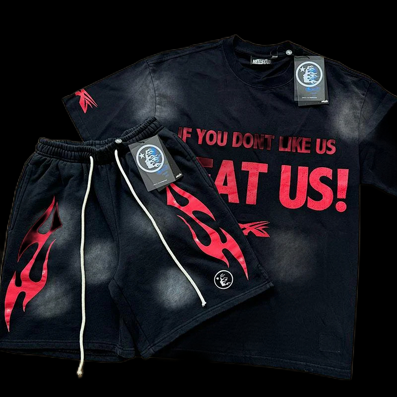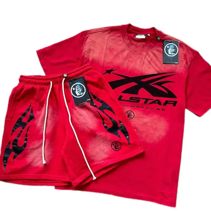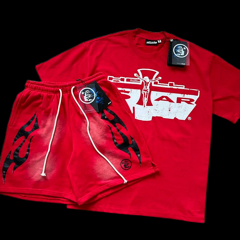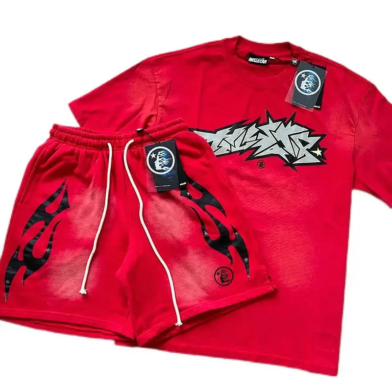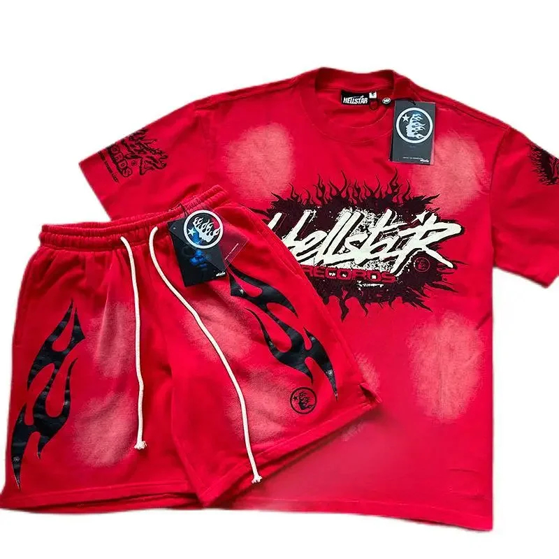 Hellstar printed loose short-sleeved shirt and shorts set-5185
