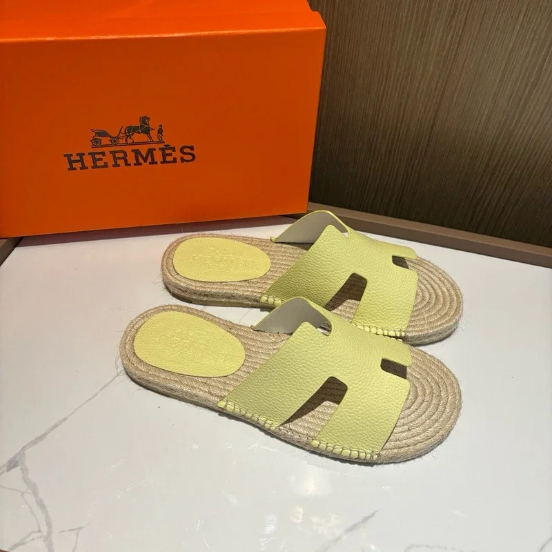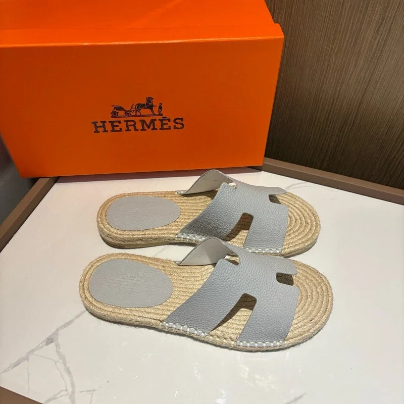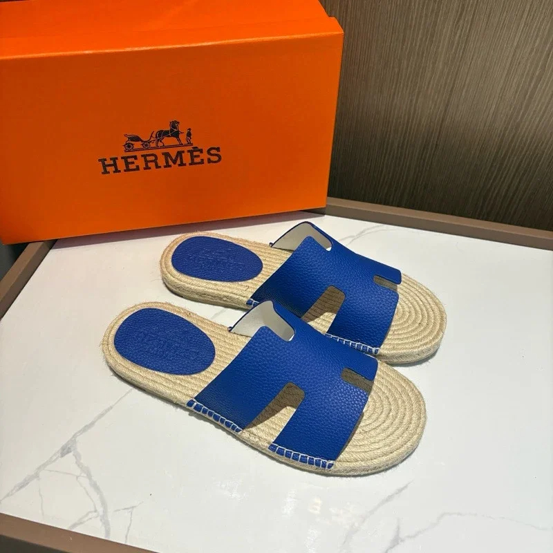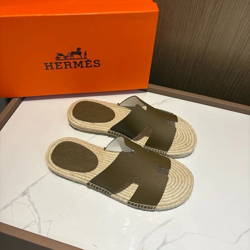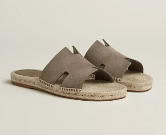HERMES Antigua Suede Round-Toe Slip-On Sandals-5137