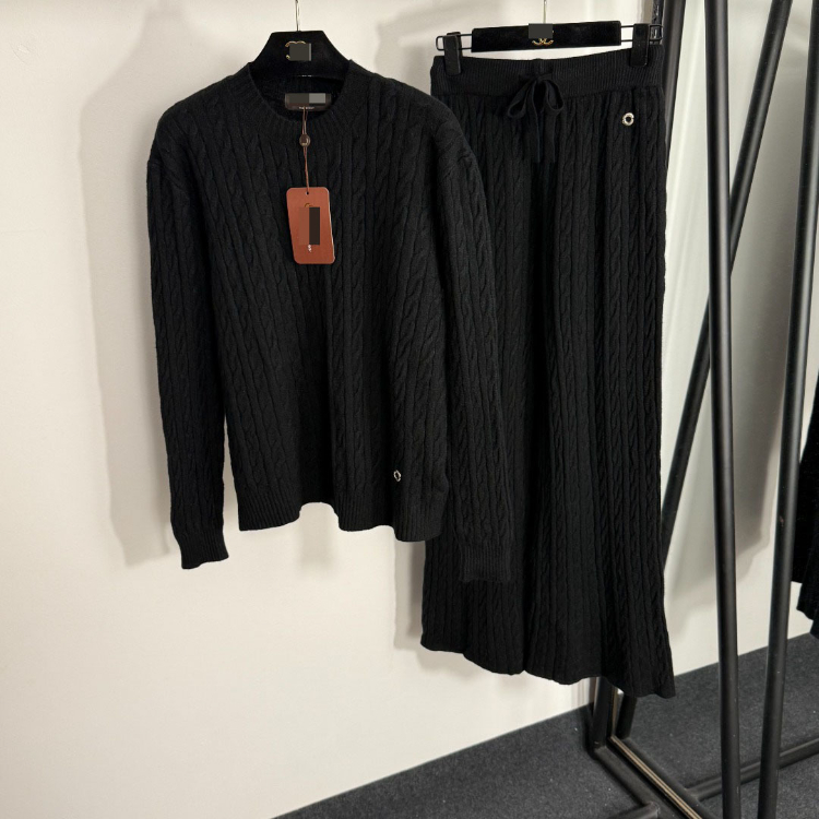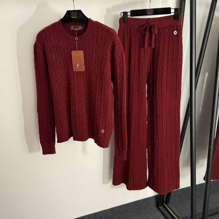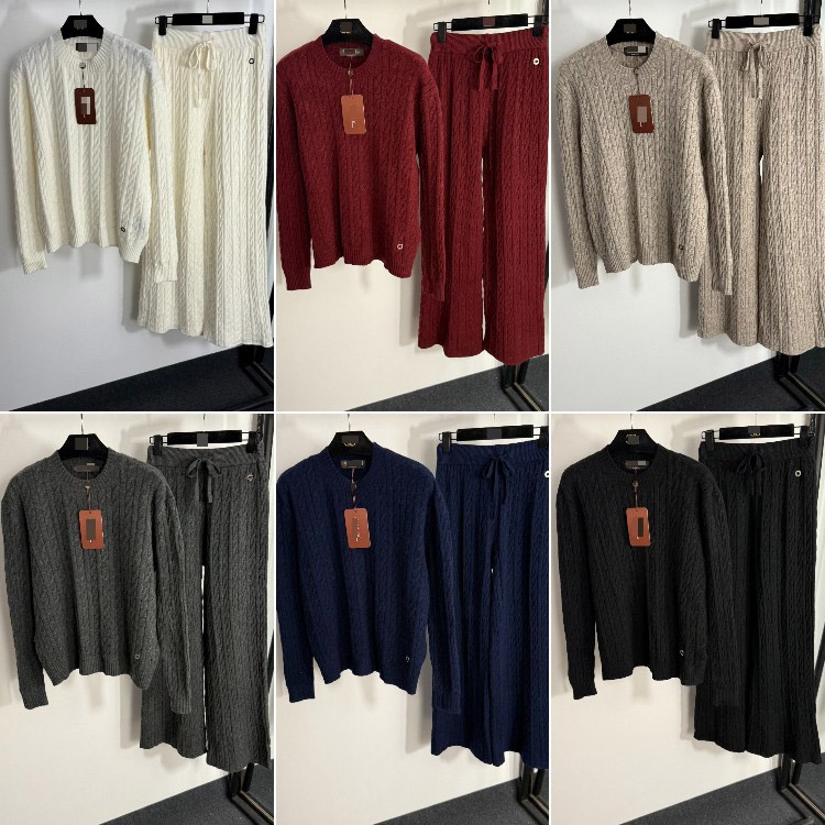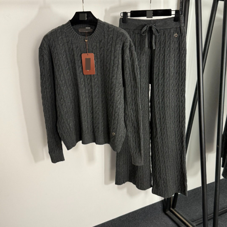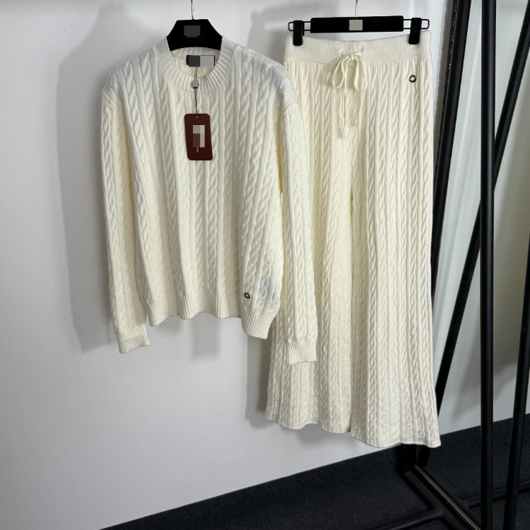 Loro Piana high-end knitted cable-knit striped sweater and wide-leg trousers-5401