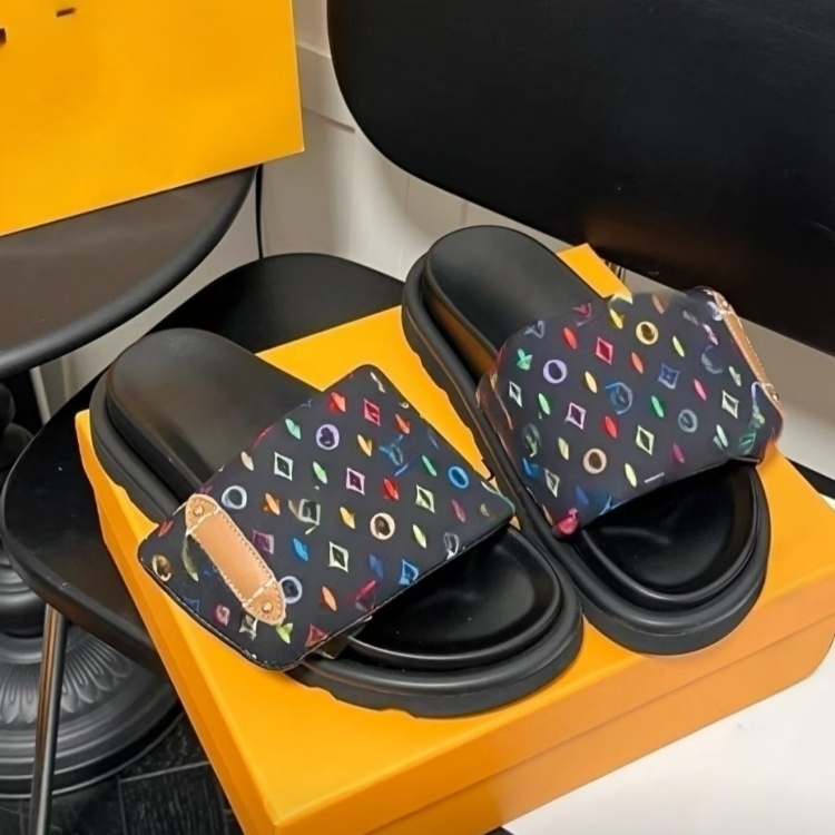Louis Vuitton LV new floral print fabric slide sandals-5734