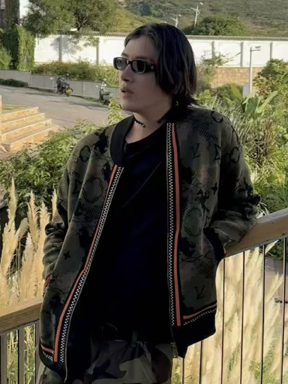Louis Vuitton LV new jacquard wool bomber knit sweater camouflage jacket-5218