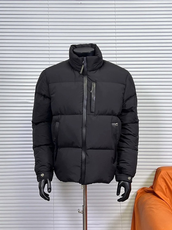 Moncler leather zip-up down jacket with concealed hood-5055