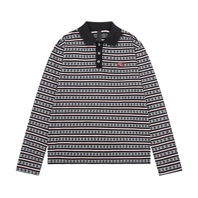 Polos Chrome Hearts CH New summer loose cross Sanskrit embroidered jacquard long-sleeved T-shirt-2517