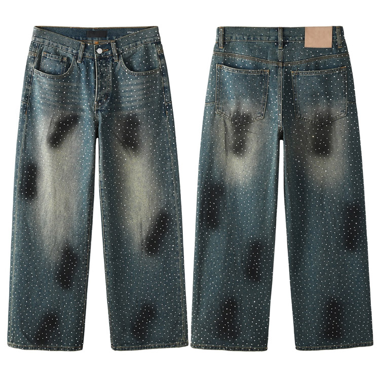 Purple Brand new diamond-studded slim-fit skinny jeans with wide legs-4247