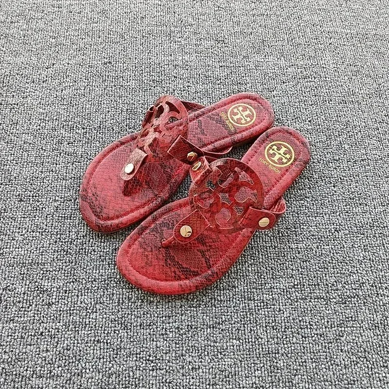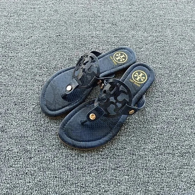 Tory Bury New diamond flat bottom women's slippers ins fashionable beach thong toe rivet rhinestone flip flops-2330